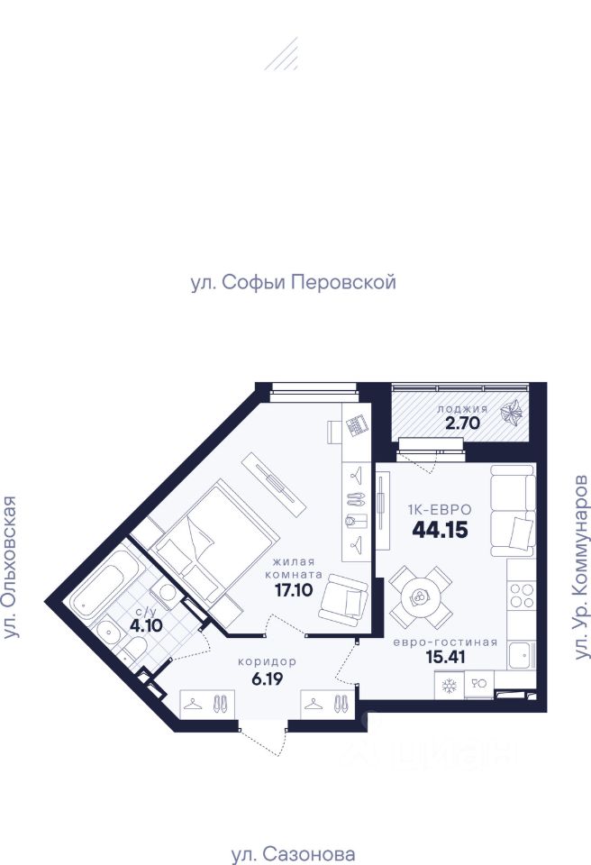 Общая площадь44,15 м²