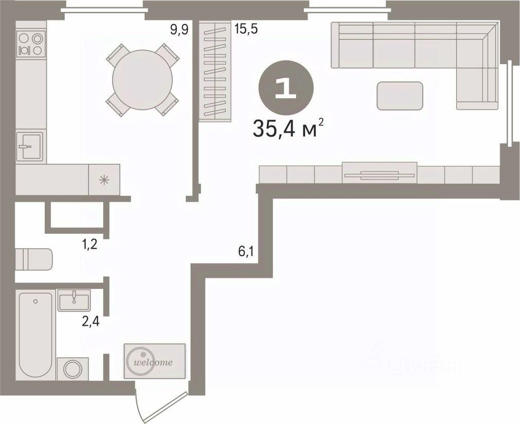 В стоимость квартиры входит: Кухня: кухонный гарнитур с раковиной и индукционной плитой. Туалет: унитаз, встроенный шкаф. Ванна: раковина с тумбой, зеркало, ванная.