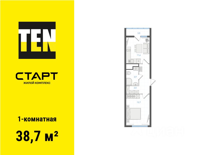 Своя квартира в ЖК "СТАРТ" в Академическом от застройщика TEN девелопмент! Ключи во 2 квартале 2026 года. ЖК "СТАРТ" - располагается в самом начале Академического района в границах улиц Вильгельма де Геннина - Краснолесья - Очеретина - Академика Вонсовского, что позволит легко добраться до центра. А трамвайная остановка напротив ЖК позволит сделать это еще быстрей. Богатое озеленение, игровые и зоны для отдыха, воркаут-площадка - все, чтобы каждому жителю было приятно проводить здесь время. Закрытый двор от машин, контроль доступа, видеонаблюдение и охрана обеспечат безопасность. Входные группы прозрачные и сквозные, расположены на уровне тротуара, чтобы было удобно завозить коляску или велосипед. Яркие холлы оформлены в едином стиле. Собственная газовая котельная, подземный паркинг и торговая галерея - сделают проживание еще комфортней. В ЖК СТАРТ самый популярный формат жилья эргономичные студии и функциональные однушки. Квартиры передаются с чистовой отделкой - натяжной потолок, обои под покраску и ламинат, установлены межкомнатные двери, розетки и выключатели. В санузле - натяжной потолок, плитка на полу и покраска стен, установлены унитаз, раковина, смеситель. Все готово к переезду, останется только расставить мебель. Выгодные условия оплаты: - акционные предложения - ипотека от ведущих банков - рассрочка от застройщика - трейд-ин Звоните или оставляйте заявку, чтобы узнать больше и забронировать квартиру!