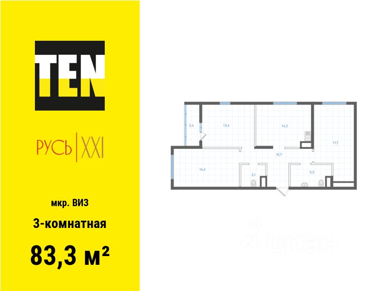 Квартира бизнес-класса в ЖК "Русь XXI" на ВИЗе от застройщика TEN девелопмент! Ключи во 2 квартале 2027 года. ЖК "Русь XXI" - это 10-секционный дом высотой от 7 до 18 этажей, из окон которого открываются вдохновляющие виды на Верх-Исетский пруд и огни мегаполиса. Двор-сад Двор закрыт от машин и посторонних, при этом на территории всегда много света и пространства благодаря разнице высот дома. Богатое озеленение, разнообразная геопластика, детские игровые и спортивная площадки, зоны для отдыха - все, чтобы каждому жителю было приятно проводить здесь время. Контроль доступа, видеонаблюдение и круглосуточная охрана обеспечат безопасность для себя и близких. Эстетика и комфорт Входные группы прозрачные и сквозные, расположены на уровне тротуара, чтобы было удобно завозить коляску или велосипед. Холлы оформлены в едином стиле - светлые пространства с отделкой под дерево и камень. Для удобства каждого жителя здесь есть мягкие и коворкинг-зоны, колясочная и лапомойка. Для автолюбителей - подземный паркинг. Настоящая свобода Большая площадь и высота потолка 3 м сделает квартиру визуально еще просторнее. При таких размерах гораздо проще подобрать оптимальный вариант дизайна интерьера для любой семьи. Отделка под чистовую. В санузле — монолитный потолок, на полу — гидроизоляция и стяжка, стены оштукатурены. В одном санузле установлены унитаз и раковина. В остальных помещениях потолок — монолит, на полу — стяжка, стены оштукатурены. Выгодные условия оплаты: - акционные предложения - ипотека от ведущих банков, семейная ипотека - рассрочка от застройщика - трейд-ин Звоните или оставляйте заявку, чтобы узнать больше и забронировать квартиру!