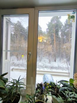 Окна выходят на разные стороны - восток и запад, с одной стороны - во двор, с другой стороны - на сосновый бор, нет шума и грязи от дорог.