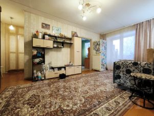 Просторная светлая гостиная с балконом (балкон остеклен)