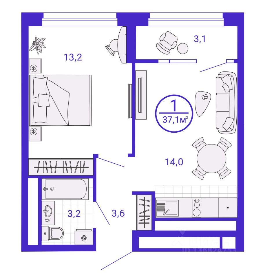 Жилая площадь13,2 м²