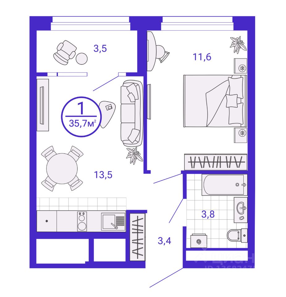 Жилая площадь11,6 м²