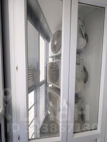 Три кондиционера с установкой наружных блоков на балконе, слив конденсата в канализацию, стеклянная перегородка и зеркальная тонировка балконных окон.