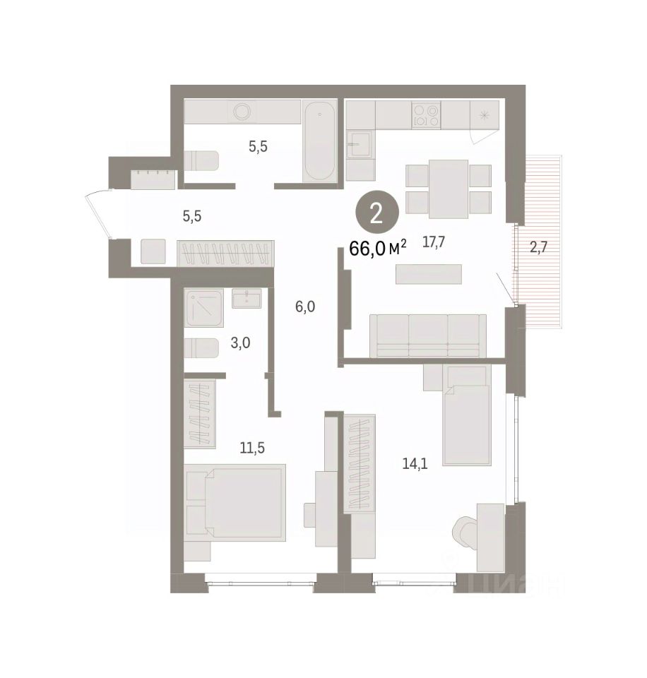 2-комн. квартира с предчистовой отделкой в ЖК "Квартал Траектория" на 6 этаже. Общая площадь: 66 кв.м., жилая: 25.6 кв.м., площадь просторной кухни-столовой: 17.7 кв.м. Угловая квартира, идеально подойдет любителям тишины и панорамных видов. В квартире один балкон, два совмещенных санузла. Высота потолков 2.82 м.