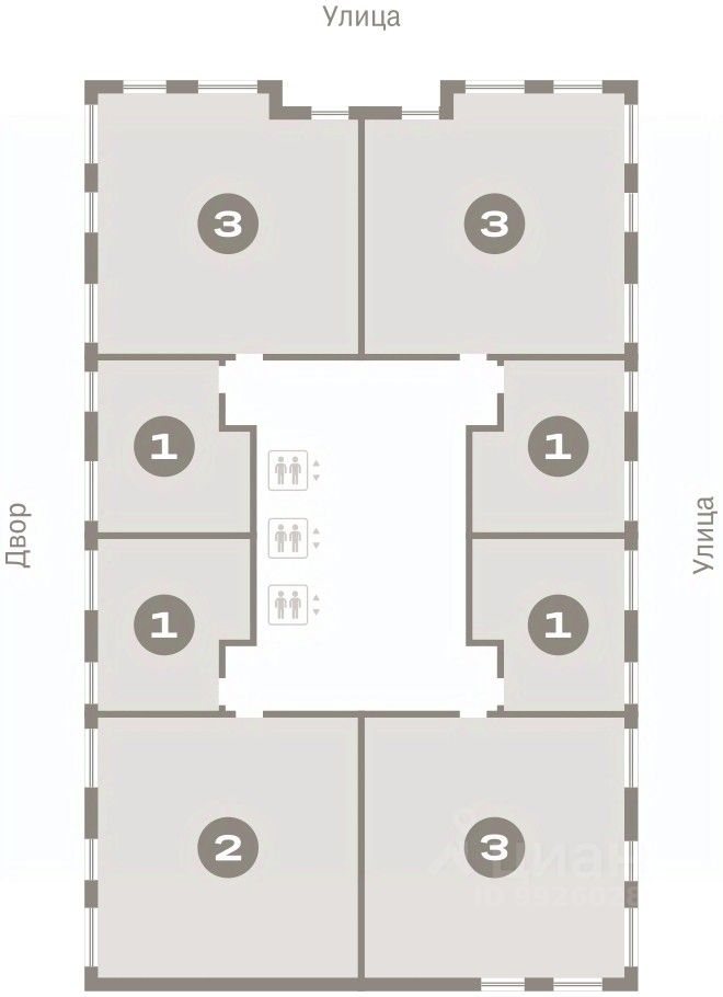 Квартира с кухней-гостиной и двумя спальнями в квартале "Траектория". Особенности планировки: гардеробная, вид во двор, разнесённые спальни, предчистовая отделка, мастер-спальня, постирочная, балкон.