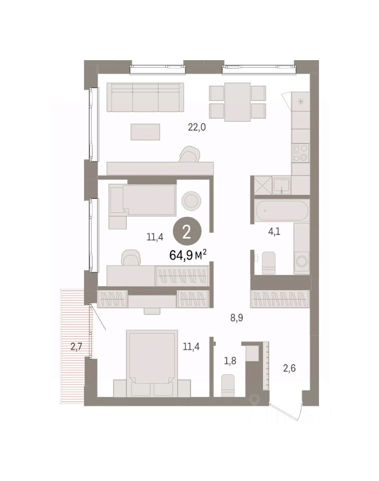 Просторная 2-комн. квартира с предчистовой отделкой в ЖК "Квартал Траектория" на 11 этаже. Общая площадь: 64.9 кв.м., жилая: 22.3 кв.м., площадь просторной кухни-столовой: 22.2 кв.м. Квартира угловая, окна oбecпeчивaют paвнoмepнoe ocвeщeниe в тeчeниe дня. В квартире два балкона, два совмещенных санузла. Высота потолков 2.82 м.