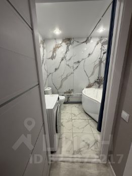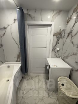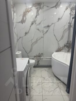 В ванной комнате на стенах гибкий мрамор, на полу керамогранит , угловая ванна с тропическим душем , унитаз , раковина будет установлена по согласованию вместе с зеркалом, новая стиральная машина 2в1 с сушкой фирмы LG.