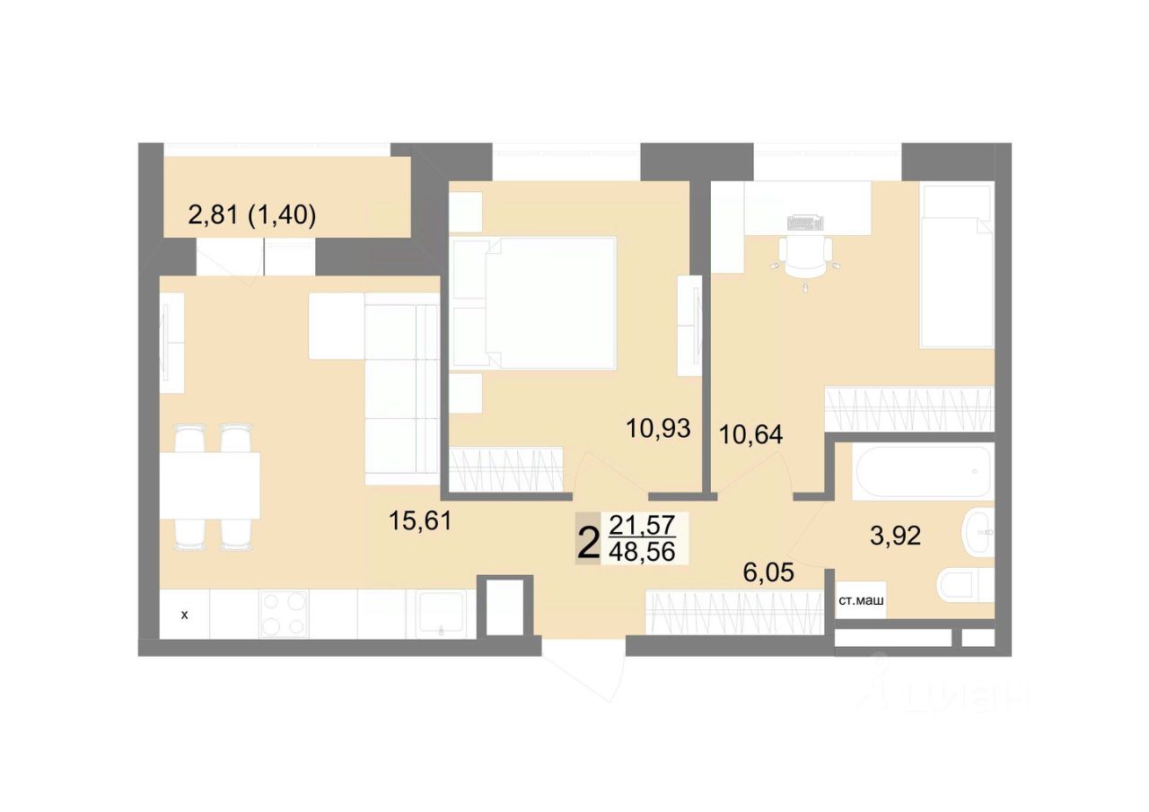 Продаётся 2-комнатная квартира в строящемся доме (Дом 1В), срок сдачи: III-кв. 2026, общей площадью 48.56 кв.м., на 8 этаже. с Квартал расположен между двумя микрорайонами - Академический и Широкая речка на пересечении улиц Тенистая-Краснолесья-Соболева. Вы сможете пользоваться преимуществами сразу двух районов! 30 минут до центра города на машине, 9 минут до Объездной дороги, если хочется выехать на природу. В шаговой доступности есть несколько школ, детских садов и спортивных секций. А еще один детский сад на 350 мест уже построен на территории самого квартала. Большой двор, разделен на рекреационные зоны. Есть площадки для малышей и подростков с безопасным покрытием, зоны ворк-аута для предпочитающих здоровый образ жизни, прогулочные дорожки для бесед с друзьями или соседями. Безопасность - важное преимущество эко-квартала. Вход на территорию осуществляется с помощью Face ID или через мобильное приложение. Входные группы оформлены в соответствии с архитектурной концепцией всего квартала, ведь всегда приятно заходить в красиво оформленный подъезд. На всех этажах предусмотрена навигационная система, чтобы ваши гости точно не заблудились! В третьей очереди квартала "На Тенистой" есть несколько уникальных планировок, в том числе с мастер-спальнями, с открытыми балконами, с панорамным остеклением лоджии. А чтобы вы точно подобрали то, что по душе, в продаже представлены все виды комнатности - от студий до трехкомнатных. Мы за быстрый переезд, поэтому все квартиры сдаются с отделкой "под ключ": поклеены обои под покраску, постелен ламинат, установлены окна, обустроен санузел, поставлены счетчики, проведена разводка. До встречи на Тенистой. Здесь всегда хорошо! Окончание строительства: III квартал 2026г.