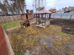 На участке: Баня, гараж, беседка с мангалом, сарай, грядки. Все в нашем индивидуальном пользовании.