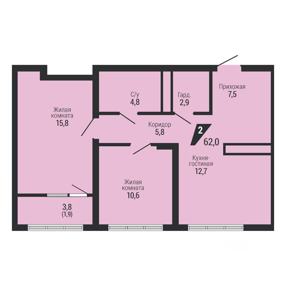 Общая площадь62 м²