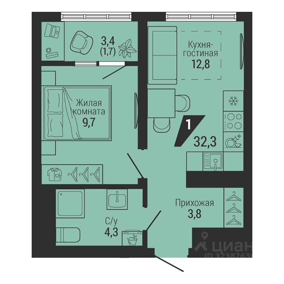 Общая площадь32,3 м²