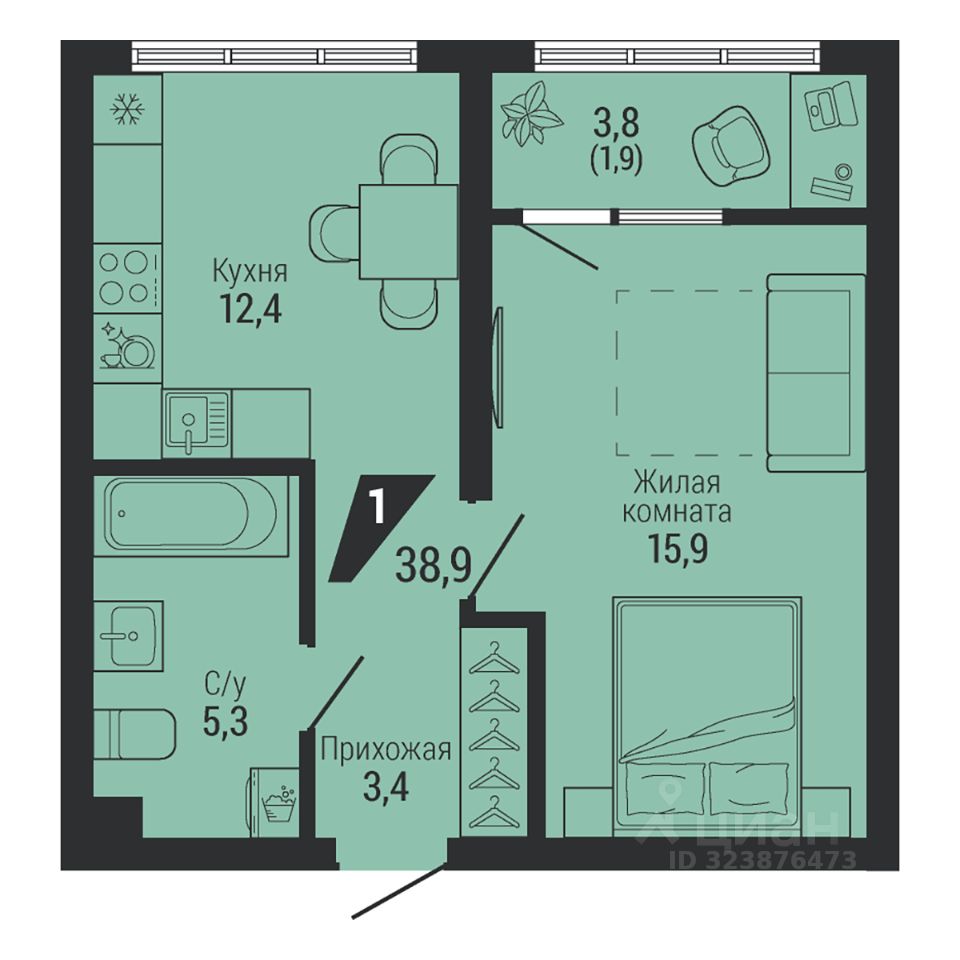 Общая площадь38,9 м²