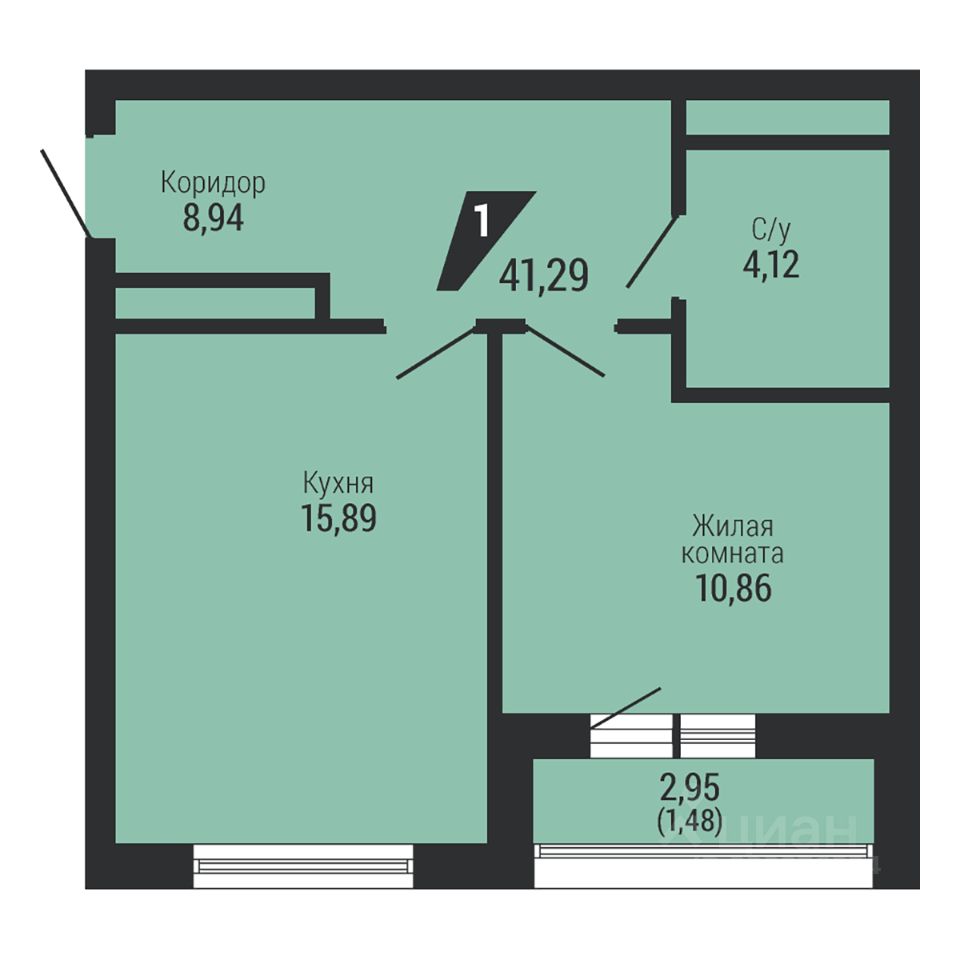 Общая площадь41,29 м²