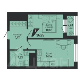 Общая площадь36,95 м²