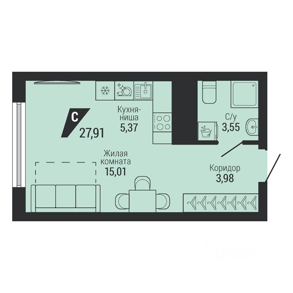 Общая площадь28,37 м²