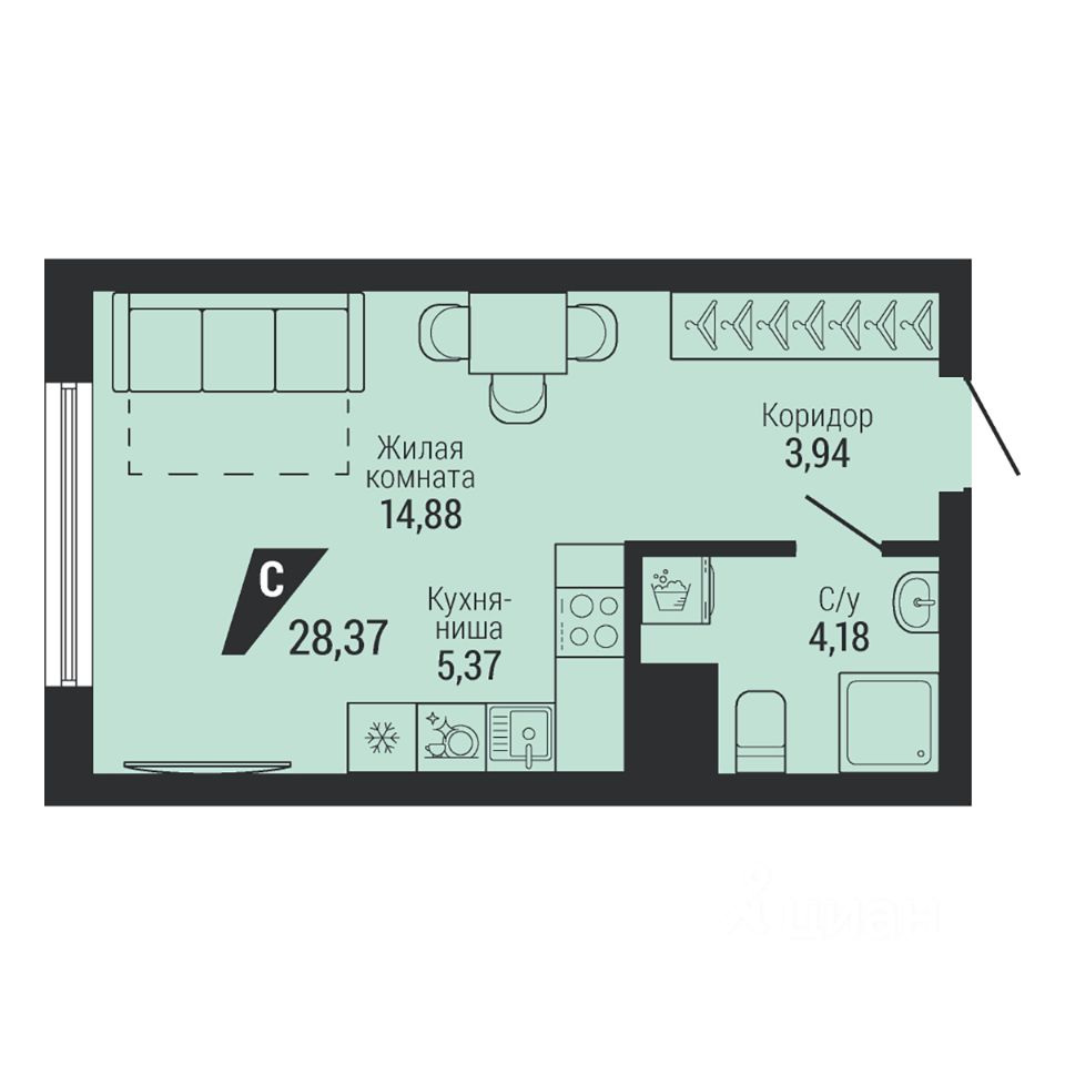 Общая площадь28,37 м²