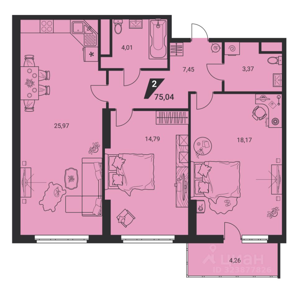 Общая площадь75,04 м²