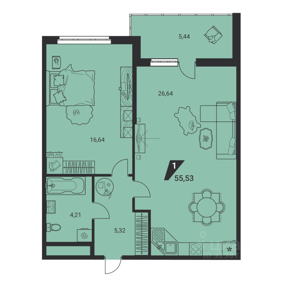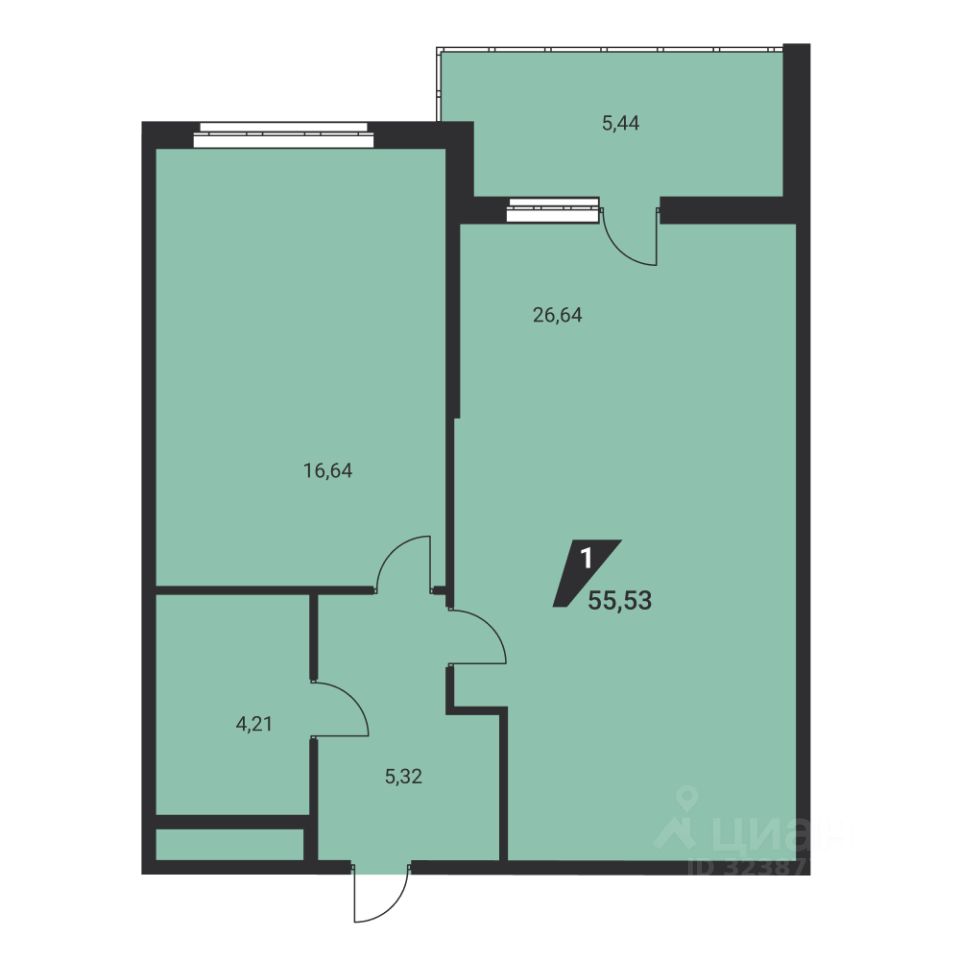 Общая площадь55,8 м²