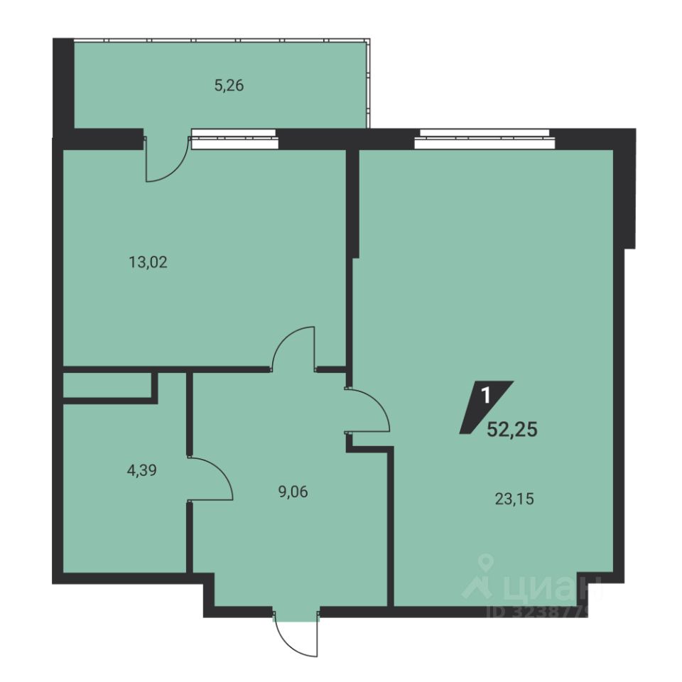 Общая площадь51,6 м²