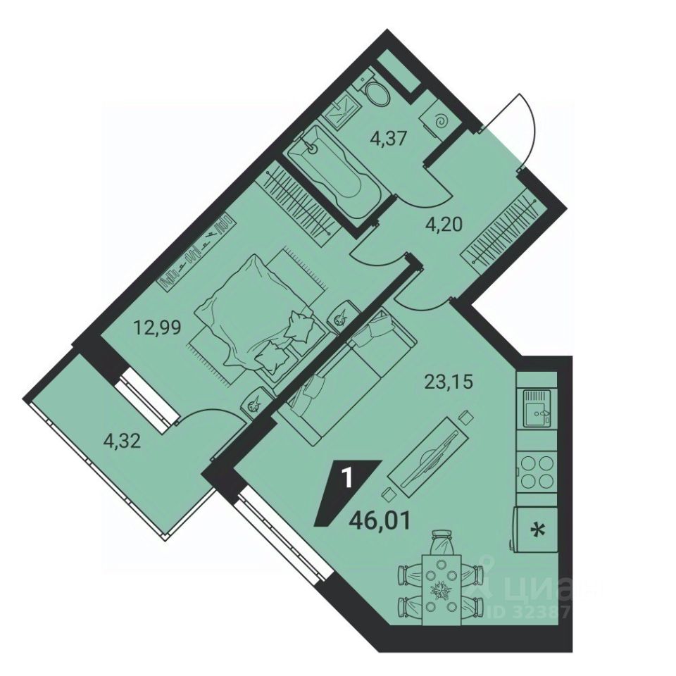 Общая площадь45,8 м²