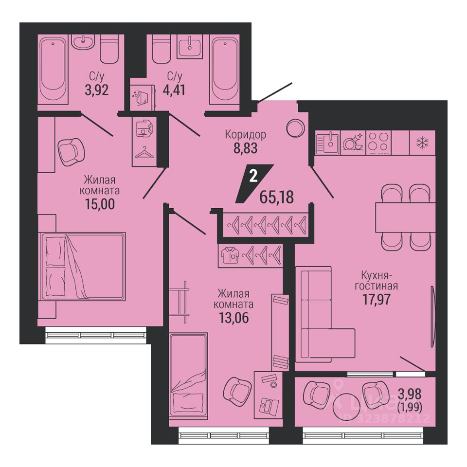 Общая площадь65,18 м²
