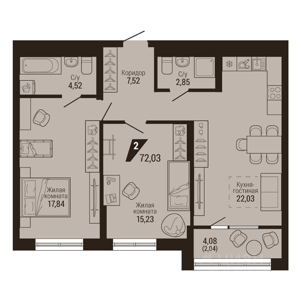 Общая площадь72,03 м²