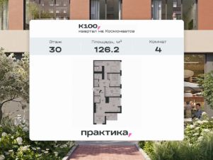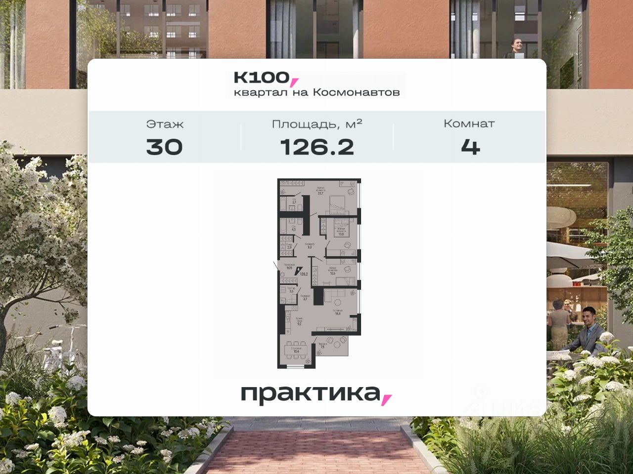 Жилой квартал "К100" на Космонавтов, 100 будет состоять из трех монолитно-кирпичных домов, объединенных общим двором. Застройщик компания "Практика". Планировки начинаются от 44,8 м² и доходят до 159,5 м². На каждом этаже располагается от восьми квартир классического и евроформата от двух до пяти комнат. Застройщик предлагает два вида отделки: white box и чистовую. Есть возможность перепланировки. Двор с ландшафтным озеленением разделен на три зоны. Для детей игровые площадки с меловыми досками и уличными шахматами, для взрослых лаунж-зона с креслами и столиками для отдыха, для спортсменов воркаут-площадка. На первом этаже лобби-клуб с игровыми комнатами, залом для йоги, коворкингом и мини-кинотеатром, колясочные и велосипедные помещения. Для автомобилистов предусмотрены гостевые места и подземный паркинг с доступом на лифте. На всей территории жилого комплекса установят видеонаблюдение. В доме будет работать консьерж-сервис в режиме 24/7. Дополнительные услуги включают клининг, выгул домашних животных, доставку еды из ресторанов и вызов такси. Также предусмотрена система "Умный дом". Рядом с жилым комплексом находятся сосновый бор, школы, детские сады, медицинские учреждения, торговые центры и супермаркеты, остановки общественного транспорта и станция метро. В шаговой доступности от дома откроется новый корпус уникальной гимназии "Арт-Этюд" — многопрофильного центра общего и художественного образования для детей от 3 до 18 лет. Строительство первой очереди жилого квартала "К100" на Космонавтов, 100 завершится в четвертом квартале 2026 года.