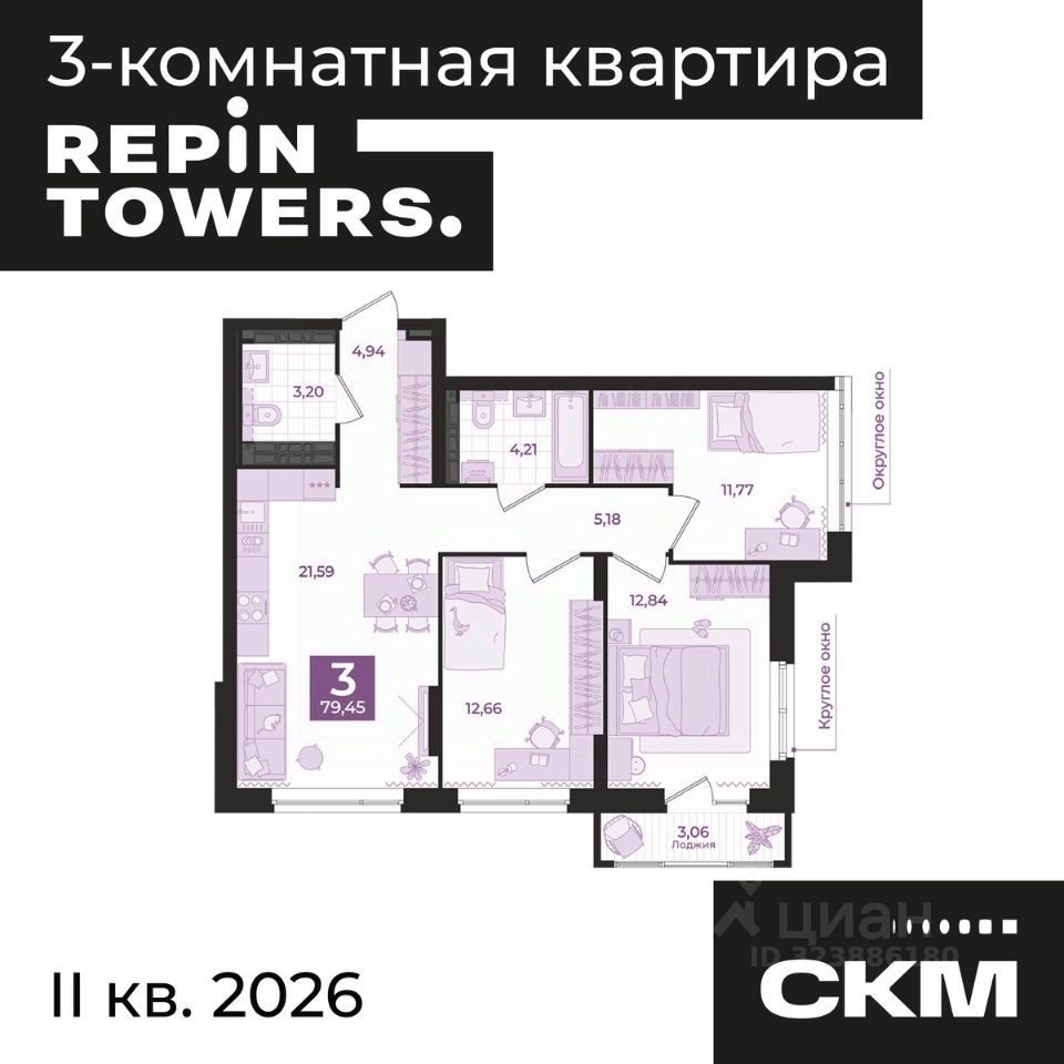 Дом 2 Ввод в эксплуатацию первая половина 2026 г. (возможен досрочный ввод). Класс дома: комфорт. Отделка: чистовая. Архитектурное решение: графитовые композитные панели в сочетании со светлой штукатуркой. Вид из окон: на Верх-Исетский пруд, центр города и лесной массив. ЖК Repin Towers три башни разной этажности объединённые общим двором. Комплекс расположен на пересечение улиц Репина Заводская. На территории запроектирован детский сад, до школы около 100 метров, пересекать проезжую часть не придется. В шаговой доступности находятся: школы ( 41, 57, 168, 121, Гимназия 202 "Менталитет") детские сады (7, 67, 348, 510) остановки общественного транспорта (ул. Репина, Начдива Васильева, Металлургов) торговые центры (Мега, Радуга-парк) парк отдыха Радуга набережная Верх-Исетского пруда с яхт-клубом "Коматек" Современная архитектура. Минимализм и круглые окна — особенность, выделяющая дом среди окружающей застройки. Двор без машин. Игровые площадки для детей разных возрастов, места отдыха и занятий спортом для взрослых не соседствуют с парковкой. Релакс-зона. Шезлонги и зонтики, поворотные кресла и паровой камин для спокойного отдыха. Парк во дворе. Многоуровневое озеленение и система туманообразования. Три уровня безопасности. Контроль доступа по карте жителя, эффективная система видеонаблюдения, консьерж-сервис. Дизайнерские холлы. Парадный холл с остеклением в пол, гостевыми санузлами и зонами ожидания. Технический холл. Для разгрузки строительных материалов, мебели и крупногабаритных вещей предусмотрен отдельный технический холл. В нем расположен грузовой лифт и санузел для мытья лап животным, а также колес велосипедов и колясок. Сервисная компания от застройщика. Обслуживанием дома будет заниматься профессиональная команда. Строительные и технические преимущества. Индивидуальный тепловой пункт: снижает затраты на отопление. Система очистки улучшит качество воды в доме. Пятикамерные окна задержат шумы и холод. Клапан вентиляции позволит проветрить комнату, не устраивая сквозняк. Горизонтальная разводка отопления: трубы спрятаны в полу. Счетчики с телеметрией. Отдельный счетчик на отопление у каждой квартиры. Отведение конденсата для кондиционеров. Высокий уровень шумоизоляции у стены квартир. Бесшумные, скоростные лифты. Реализация строящегося объекта осуществляется от застройщика по договору участия в долевом строительстве в соответствии с ФЗ-214 "Об участии в долевом строительстве", застройщик ООО "Специализированный Застройщик Репина". Варианты оплаты: ипотека, индивидуальные условия рассрочки, trade in, материнский и жилищные сертификаты, подробности в отделе продаж.