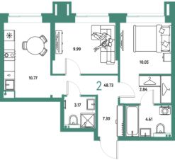 Продаётся 2-комнатная квартира в строящемся доме (Потенциал), срок сдачи: IV-кв. 2027, общей площадью 48.73 кв.м., на 2 этаже. Новый жилой комплекс "Страна.Энтузиастов" от группы компаний "Страна Девелопмент" расположен по адресу: г. Екатеринбург, по ул. Шефская.