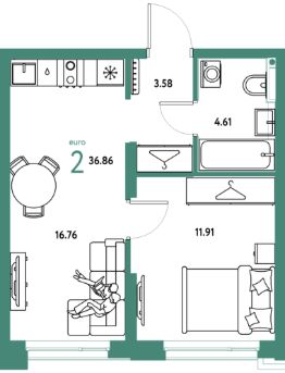 Продаётся 2-комнатная квартира в строящемся доме (Потенциал), срок сдачи: IV-кв. 2027, общей площадью 36.86 кв.м., на 2 этаже. Новый жилой комплекс "Страна.Энтузиастов" от группы компаний "Страна Девелопмент" расположен по адресу: г. Екатеринбург, по ул. Шефская.