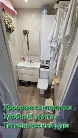 Санузел с удобным функционалом и гигиеническим душом. Установлен проточный водонагреватель, мощности хватает, чтобы помыться, во время отключения гор. воды. Для водонагревателя проведёт и выведен отдельный кабель с автоматом.