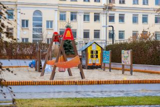 В шаговой доступности находятся школы, садики.