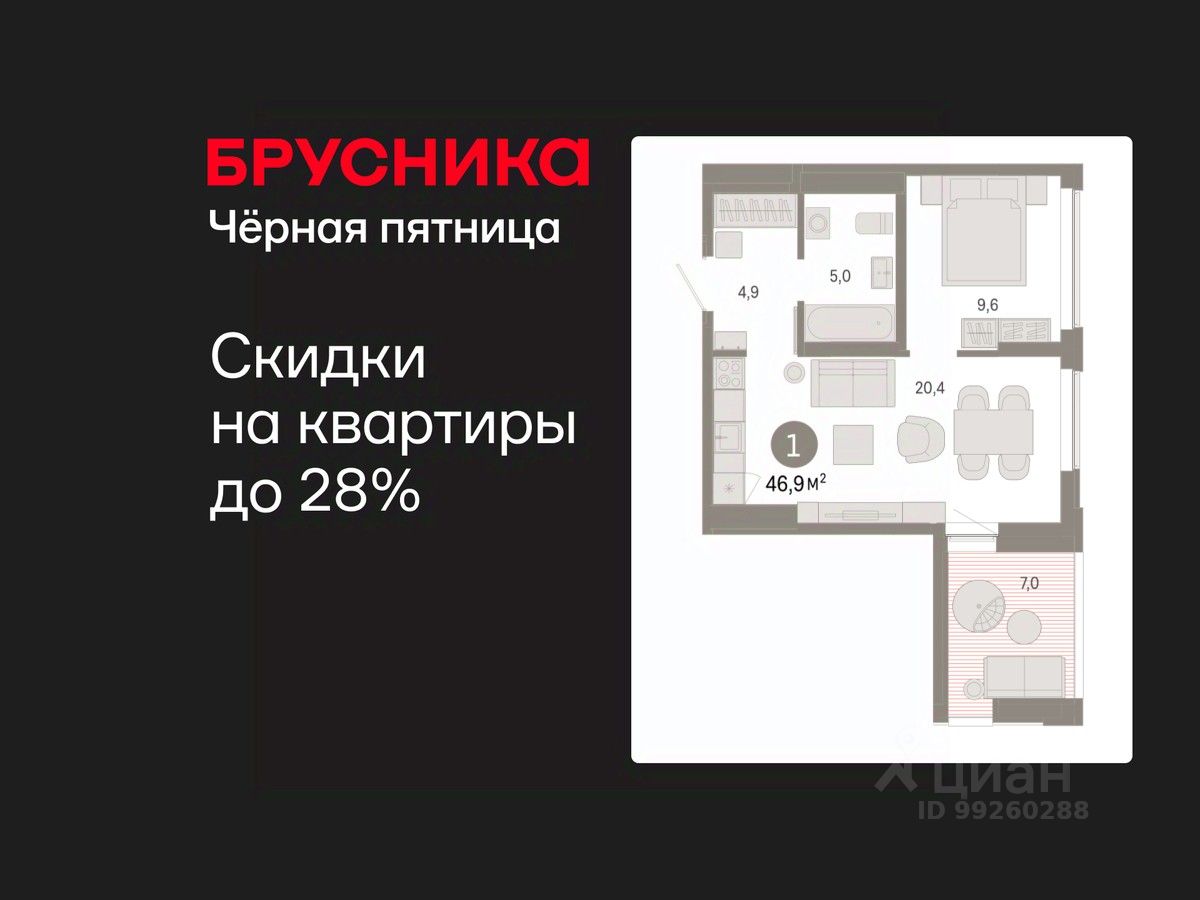 Квартира с кухней-гостиной и одной спальней в районе Шишимская горка. Особенности планировки: предчистовая отделка, терраса на крыше.