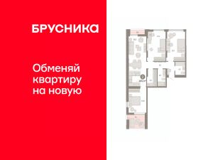 Квартира с кухней-гостиной и тремя спальнями в районе Шишимская горка. Особенности планировки: второй санузел, гардеробная, лоджия, предчистовая отделка.