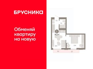 Квартира с кухней-гостиной и одной спальней в районе Шишимская горка. Особенности планировки: балкон, предчистовая отделка.