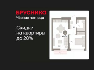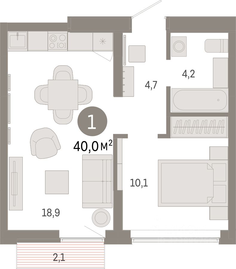 Квартира с кухней-гостиной и одной спальней в районе Шишимская горка. Особенности планировки: предчистовая отделка, балкон.
