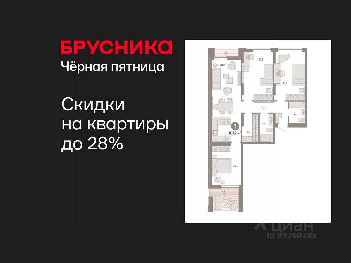 Квартира с кухней-гостиной и тремя спальнями в районе Шишимская горка. Особенности планировки: окна на две стороны, второй санузел, гардеробная, разнесённые спальни, предчистовая отделка, терраса на крыше.