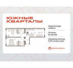 Квартира с кухней-гостиной и двумя спальнями в Южных кварталах. Особенности планировки: окна на две стороны, вид во двор, предчистовая отделка, мастер-спальня.