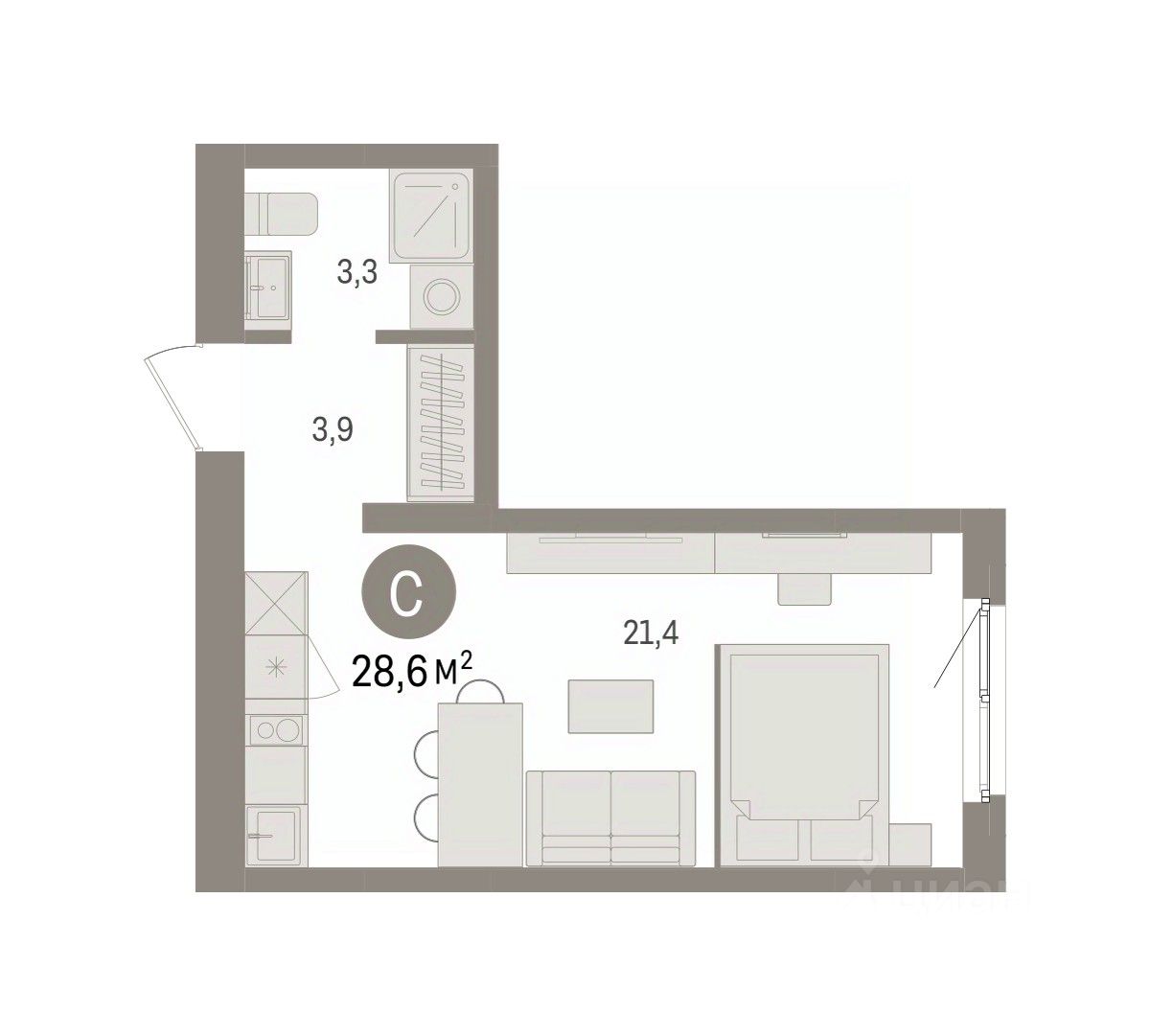Студия в Южных кварталах. Особенности планировки: вид во двор, предчистовая отделка.