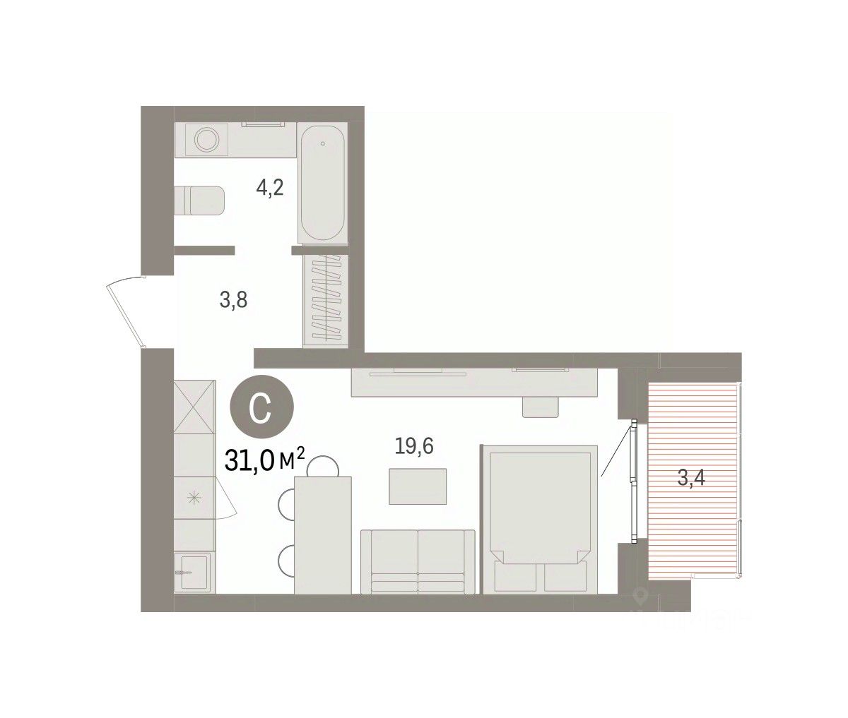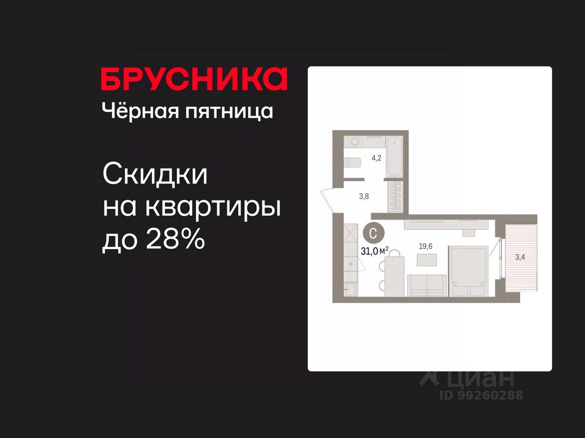 Студия в Южных кварталах. Особенности планировки: предчистовая отделка, балкон.