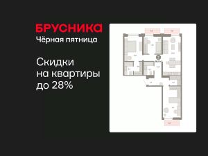 Квартира с кухней-гостиной и тремя спальнями в Южных кварталах. Особенности планировки: окна на две стороны, гардеробная, вид во двор, разнесённые спальни, предчистовая отделка, мастер-спальня, балкон.