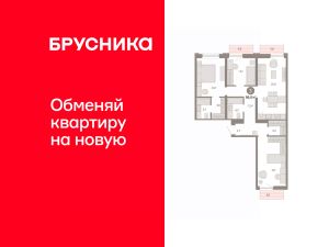 Квартира с кухней-гостиной и тремя спальнями в Южных кварталах. Особенности планировки: балкон, окна на две стороны, предчистовая отделка, разнесённые спальни.