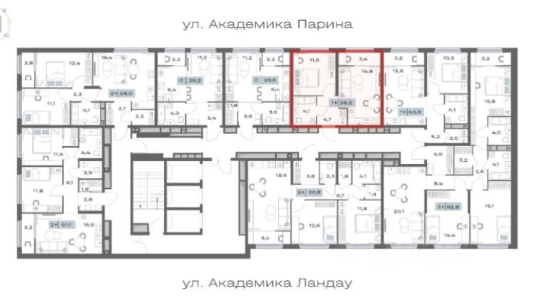 Дом расположен между улицами Академика Парина и Ландау.