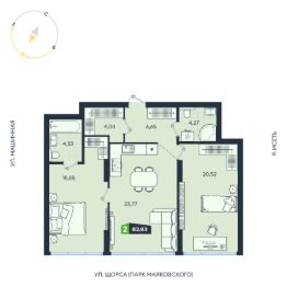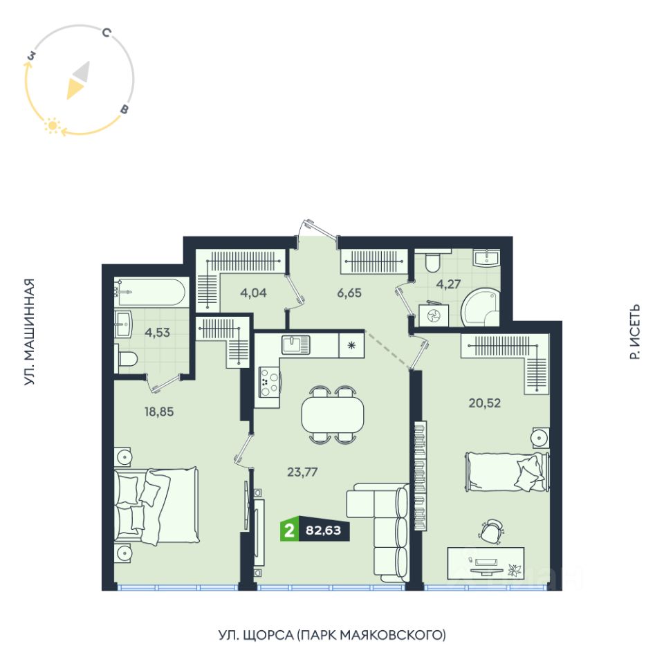 Продаётся 2-комнатная квартира в строящемся доме (Дом 8 (17А-17В)), срок сдачи: IV-кв. 2026, общей площадью 82.63 кв.м., на 2 этаже. В жилом квартале есть собственный выход в ЦПКиО им. Маяковского для утренних пробежек и отдыха всей семьёй.