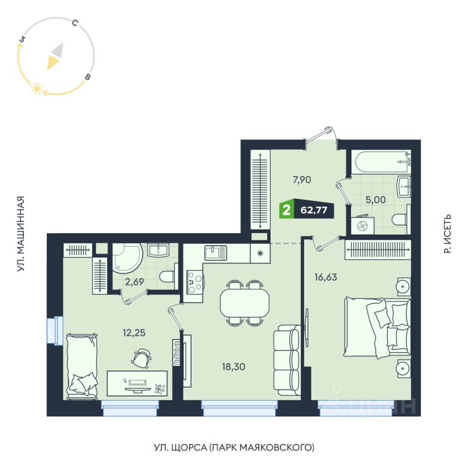 Продаётся 2-комнатная квартира в строящемся доме (Дом 8 (17А-17В)), срок сдачи: IV-кв. 2026, общей площадью 62.77 кв.м., на 3 этаже. В жилом квартале есть собственный выход в ЦПКиО им. Маяковского для утренних пробежек и отдыха всей семьёй.
