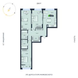 Продаётся 4-комнатная квартира в строящемся доме (Дом 8 (17А-17В)), срок сдачи: III кв. 2027, общей площадью 114.56 кв.м., на 3 этаже. В жилом квартале есть собственный выход в ЦПКиО им. Маяковского для утренних пробежек и отдыха всей семьёй.