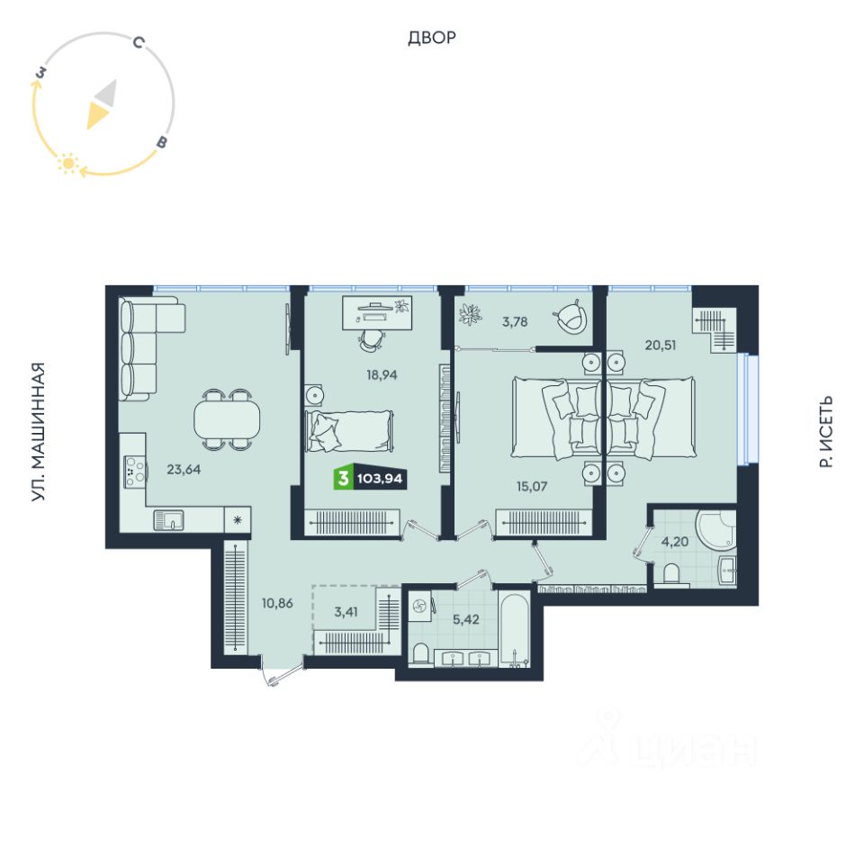 Продаётся 3-комнатная квартира в строящемся доме (Дом 8 (17А-17В)), срок сдачи: III кв. 2027, общей площадью 103.94 кв.м., на 12 этаже. В жилом квартале есть собственный выход в ЦПКиО им. Маяковского для утренних пробежек и отдыха всей семьёй.