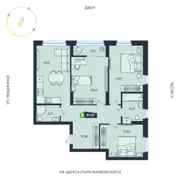 Продаётся 3-комнатная квартира в строящемся доме (Дом 8 (17А-17В)), срок сдачи: IV-кв. 2026, общей площадью 97.37 кв.м., на 29 этаже. В жилом квартале есть собственный выход в ЦПКиО им. Маяковского для утренних пробежек и отдыха всей семьёй.